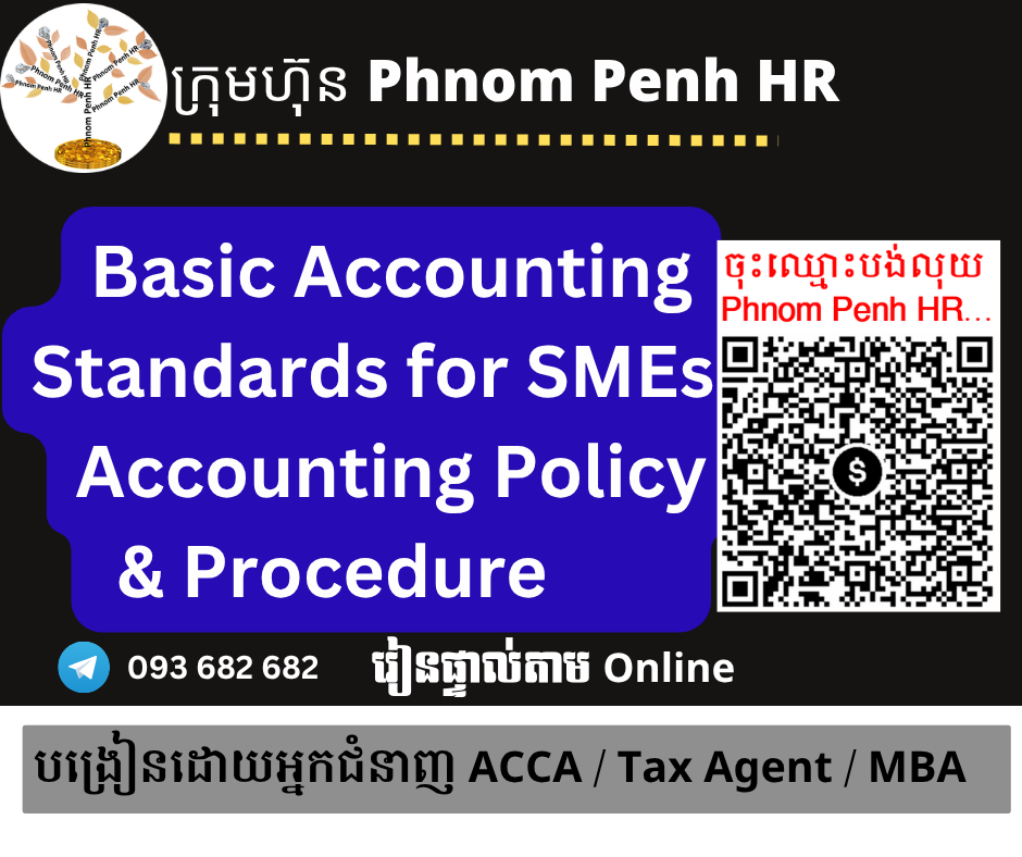 រៀនផ្ទាល់តាម Online ៖ Basic Accounting Standards for SMEs , Accounting Policy & Procedure  (ស្តង់ដារគណនេយ្យមូលដ្ឋានសម្រាប់សហគ្រាសធុនតូចនិងមធ្យម រួមទាំង គោលនយោបាយគណនេយ្យ និង នីតិវិធី ) 👉 រៀនតែ ១ ថ្ងៃ វគ្គថ្មីចូលរៀនថ្ងៃសៅរ៍ទី 25/4/2026 ពីម៉ោង 8 AM to 12 PM និង 1:30 PM to 5:30 PM