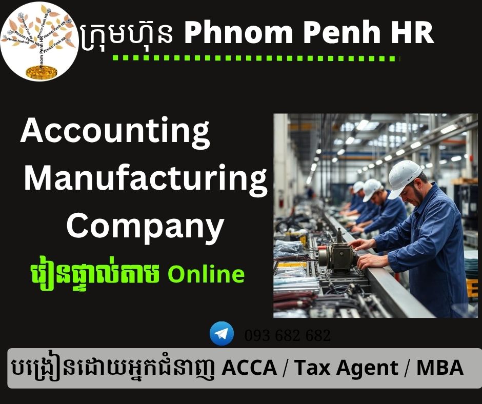 រៀនផ្ទាល់តាម Online ៖ Accounting for Manufacturing Company (គណនេយ្យសម្រាប់ក្រុមហ៊ុនផលិតកម្ម) 👉 រៀនតែ ១ ថ្ងៃ វគ្គថ្មីចូលរៀនថ្ងៃសៅរ៍ទី 30/8/2025 ពីម៉ោង 8 AM to 12 PM និង 1:30 PM to 5:30 PM