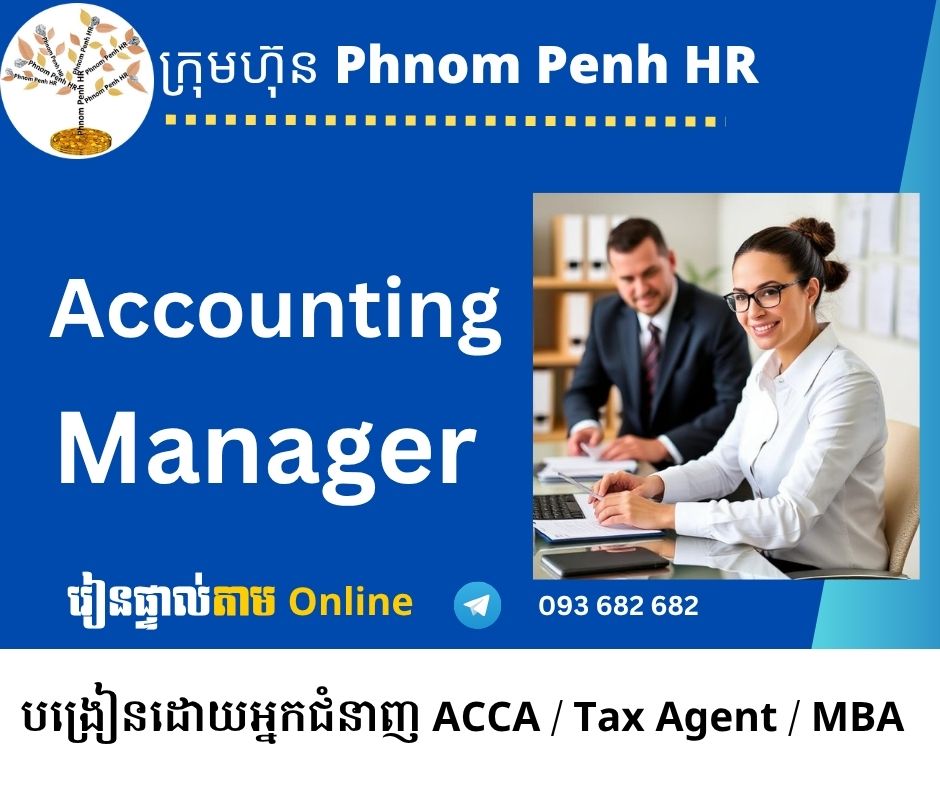 ក្រុមហ៊ុន Phnom Penh HR នឹងធ្វើការបណ្តុះបណ្តាលវគ្គ Qualified Modern Accounting Manager ទាំងទ្រឹស្តីនិងការអនុវត្តជាក់ស្តែងតាម Online ដែលមានមុខវិជ្ជាដូចខាងក្រោម៖
