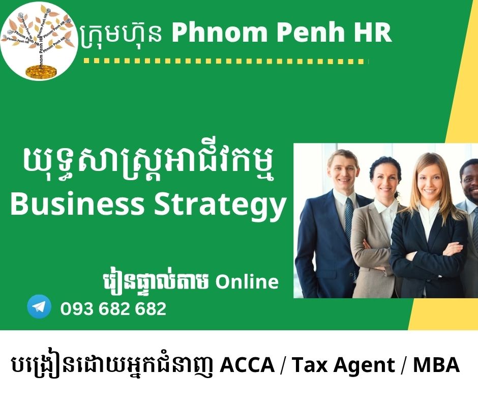 រៀនផ្ទាល់តាម Online ៖ មុខវិជ្ជា Business Strategy (យុទ្ធសាស្ត្រអាជីវកម្ម) 👉 រៀនតែ ១ ថ្ងៃ វគ្គថ្មីចូលរៀនថ្ងៃសុក្រទី 15/8/2025 ពីម៉ោង 8 AM to 12 PM និង 1:30 PM to 5:30 PM