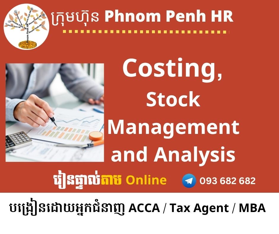 ក្រុមហ៊ុន Phnom Penh HR នឹងធ្វើការបណ្តុះបណ្តាលទាក់ទងនឹង Costing, Stock Management and Analysis ទាំងទ្រឹស្តីនិងការអនុវត្តជាក់ស្តែងតាម Online ដែលធ្វើអោយលោកអ្នកអាចអនុវត្តក្នុងក្រុមហ៊ុន ចំនុចសំខាន់ៗត្រូវរៀនដូចខាងក្រោម៖