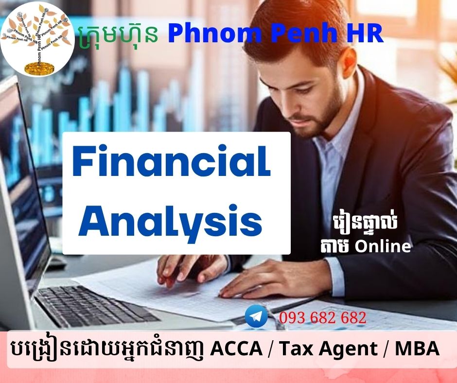 ក្រុមហ៊ុន Phnom Penh HR នឹងធ្វើការបណ្តុះបណ្តាលទាក់ទងនឹង Financial Analysis ទាំងទ្រឹស្តីនិងការអនុវត្តជាក់ស្តែងតាម Online ដែលធ្វើអោយលោកអ្នកអាចអនុវត្តក្នុងក្រុមហ៊ុន ចំនុចសំខាន់ៗត្រូវរៀនខាងក្រោម៖