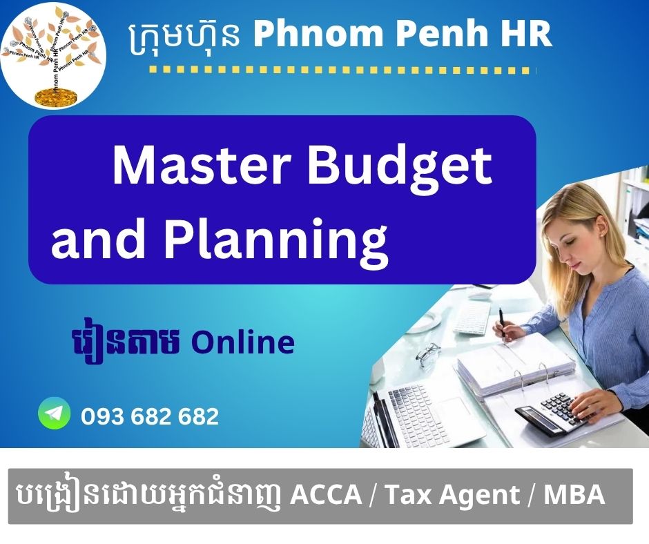 ក្រុមហ៊ុន Phnom Penh HR នឹងធ្វើការបណ្តុះបណ្តាលទាក់ទងនឹង Prepare Master Budget & Planning for Financial Statements ទាំងទ្រឹស្តីនិងការអនុវត្តជាក់ស្តែងតាម Online ដែលធ្វើអោយលោកអ្នកអាចយកទៅអនុវត្តក្នុងក្រុមហ៊ុន ចំនុចសំខាន់ៗដែលត្រូវរៀនដូចខាងក្រោម៖