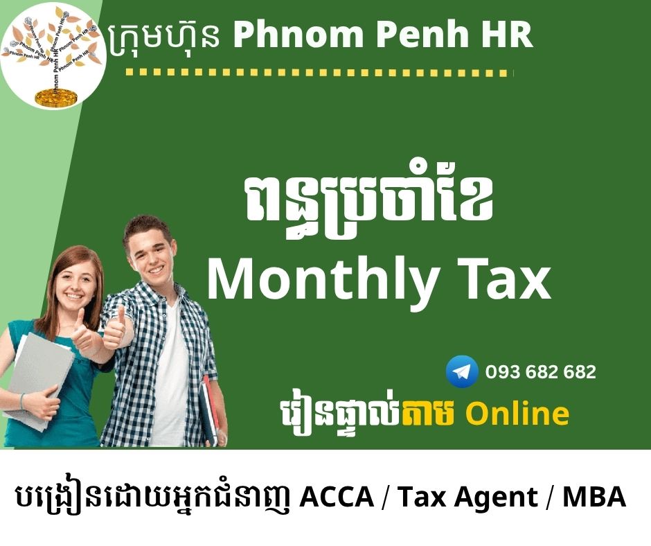 រៀនផ្ទាល់តាម Online ៖ Monthly Tax (ពន្ធប្រចាំខែ ) 👉រៀនតែ ១ ថ្ងៃ វគ្គថ្មីចូលរៀនថ្ងៃចន្ទ័ទី 11/8/2025 ពីម៉ោង 8 AM to 12 PM និង 1:30 PM to 5:30 PM